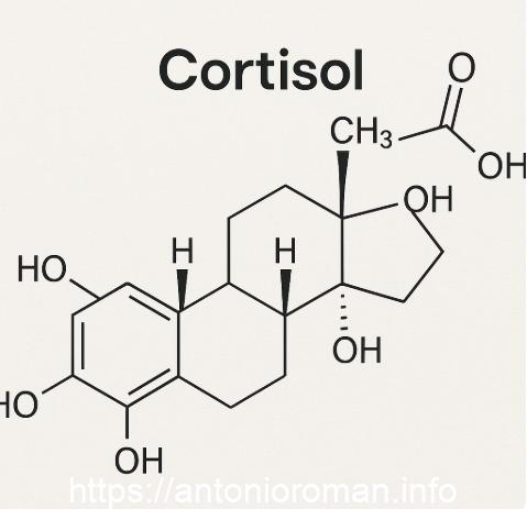 Estructura molecular del cortisol, hormona del estrés que disminuye durante la lectura profunda, facilitando la calma, la introspección y la regulación emocional.