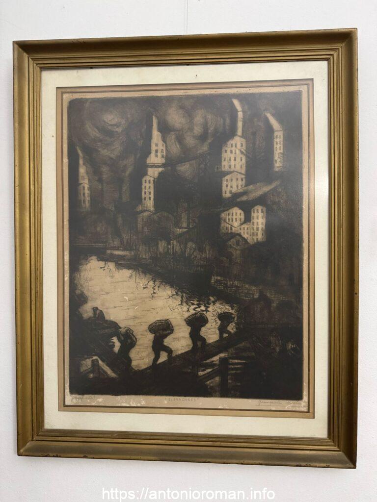 Grabado «Elevadores» de Benito Quinquela Martín, de mi colección personal.