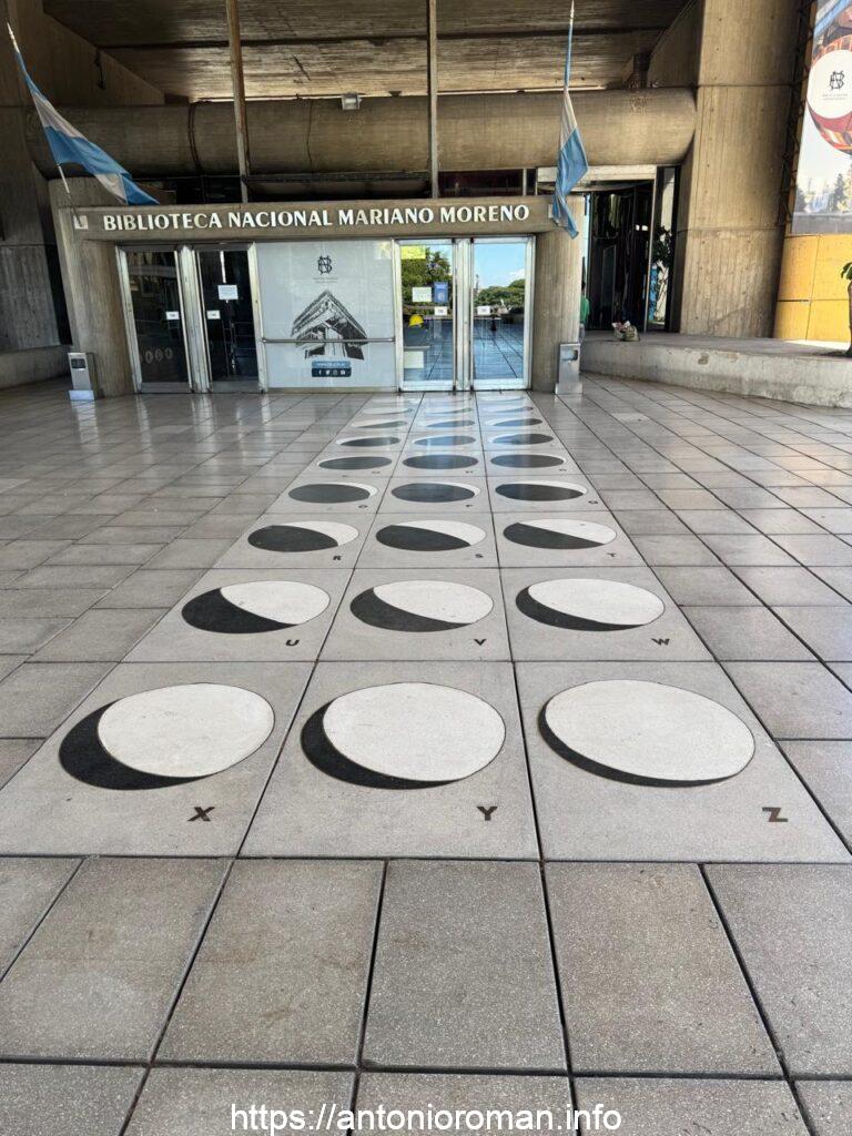 Biblioteca en un tronco (se escanea un código QR para acceder al catálogo) en Mar Azul balnearia de la provincia de Buenos Aires, Argentina. Director de la Supreme Court of India, Dr. R K Srivastava. Alfabeto Lunar de Leandro Katz en el ingreso de Biblioteca Nacional Mariano Moreno.