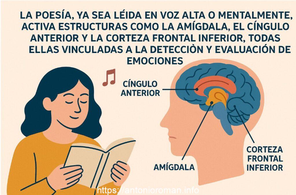 Estudios de imagen cerebral muestran que la recitación poética o litúrgica activa regiones como el cíngulo anterior, la ínsula y el hipocampo —áreas implicadas en la emoción, la introspección y la memoria autobiográfica (Zeman et al., 2013; Wassiliwizky et al., 2017). La palabra rítmica, repetida con intención, se vuelve así un acto transformador que conjuga cuerpo, mente y emoción.